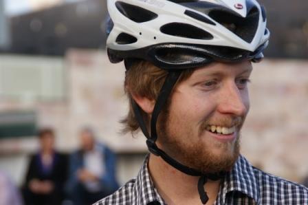 So them Brewery Boys came along and loitered in the luxury surrounds of Federation Square last week and they was lovely and nice to chat with and like their mums brung ’em up good to be nice and polite to their fellow cyclists. Specially this one, he had a nice collared shirt. You don’t get enough of these nice collared shirts in these man-riders these days, it’s all cut-off denim and black t-shirts and retro cycling caps. I like collared shirts, they go with manners.