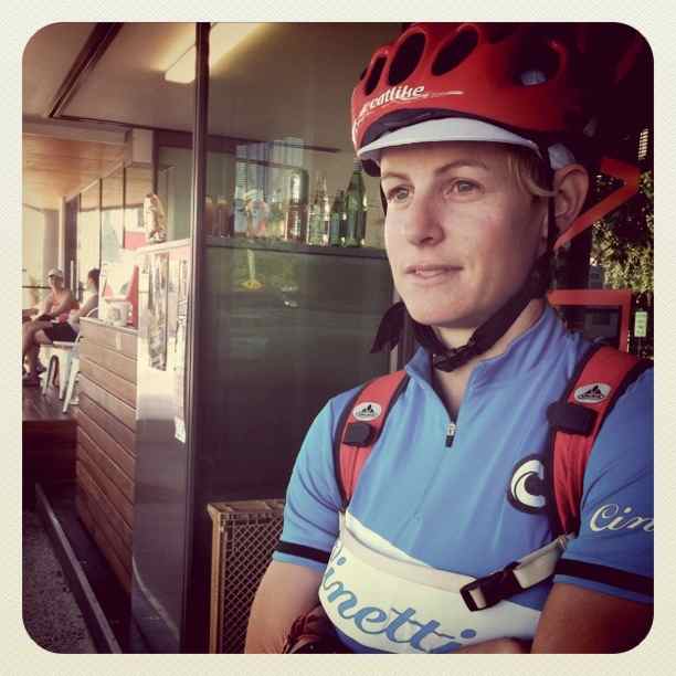 Emma ticks several of my boxes: matching (helmet to backpack; tape to rims; jersey to undertone of eyes); being nice; smiling at strangers; not 100% weirded out by me and my silly talkie talkie crap. Oh, and she likes bikes. See that. Boxes ticked.