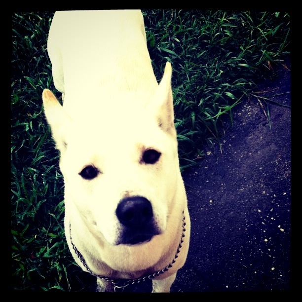 I know why Sheba was running loose because she absolutely jumped this 2m high fence like it was nothing at all, perched as ably as a cat on the narrow fence and was out in the street before I could even get my wet running gear off and break two lightbulbs in the apartment I’m staying in. And she was not having a bar of the rope I took out from the back of my car. She was, however, okay with sitting just outside the door and watching me with these dark pool eyes standing out against her pale fur.